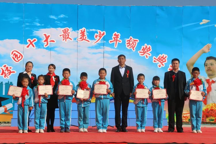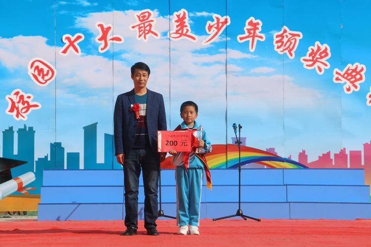 身披红绶带,胸佩大红花,走上领奖台。10月20日,正值十九大隆重召开之际,我们学校迎来了第二届“校园十大最美少年”颁奖典礼,典礼在学校南广场举行。路卓曦、成雨汐、杨云静、郝一凡等10名学生荣获“第二届丰园小学最美少年”称号,路晨曦、李敏、李思彤等16名学生荣获第二届丰园小学“星光少年”称号。
